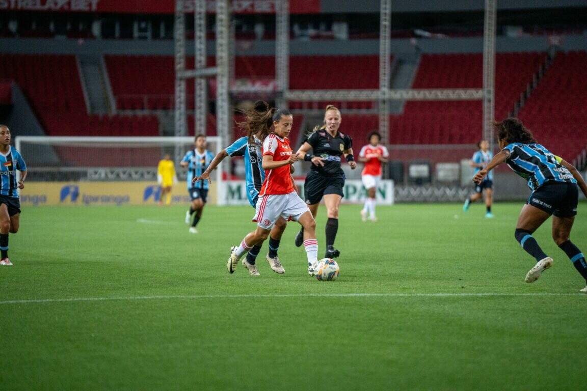 Depois, em cobrança de falta de Aquino, Lorena voou para desviar a bola no momento certo, tirando das atacantes adversárias que chegavam para concluir na área do Tricolor, aos 19 minutos. Três minutos depois, quase o Grêmio abriu o marcador. Cassia ganhou no pé de ferro da zagueira e arriscou o chute por elevação. Tainá deixou escapar por cima e acabou defendendo no segundo momento, quase tomando um “frango”.