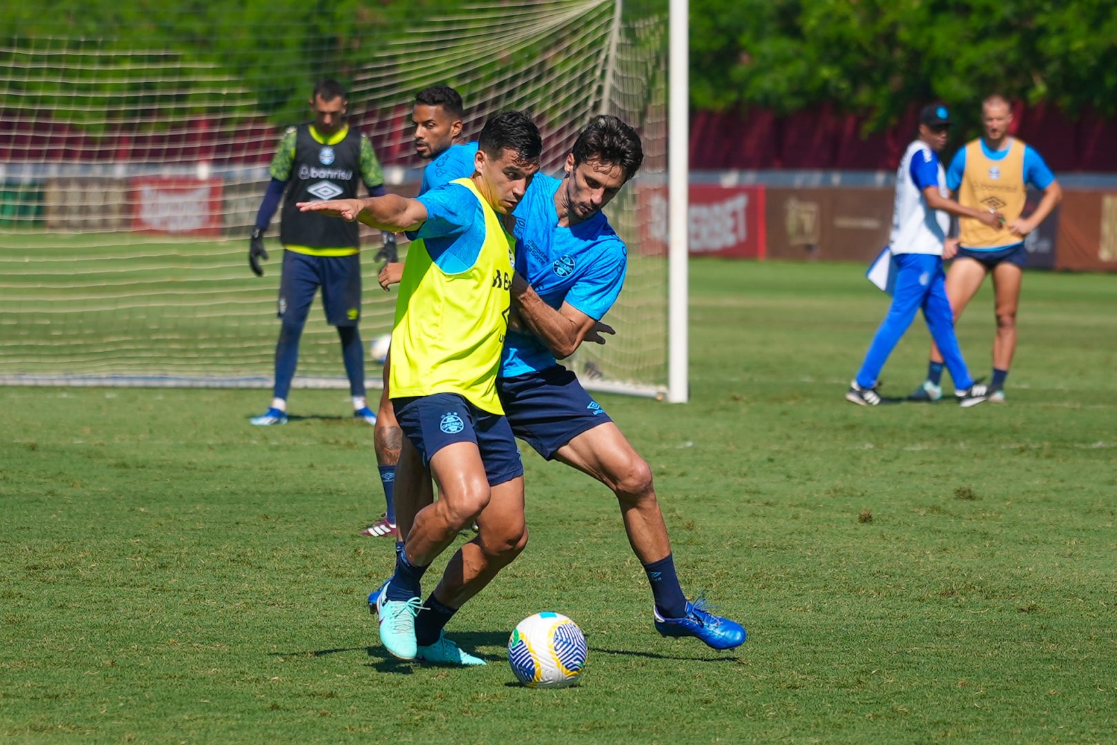 Na sequência, Renato Portaluppi comandou um treino técnico. Na primeira parte, com o grupo dividido por setores, um trabalho intenso de passe, aceleração, inversão de lado e transição da defesa pro ataque finalizando com arremates a gol tanto do lado direito quanto do esquerdo.