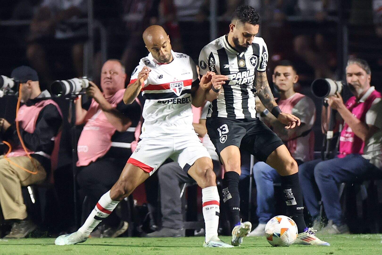 A decisão se apresentou no MorumBis conforme o tamanho que tinha. A noite de Copa Libertadores lotou todos os setores do estádio, incluindo a área de visitantes. O São Paulo converteu a festa de fumaça e sinalizadores em vontade. Calleri que o diga. O argentino disputou a posse de bola na intermediária como se a vida dependesse disso, com menos de cinco minutos. Arboleda deu continuidade nos passos do atacante, em um lance que afastou de carrinho a chegada do Botafogo.