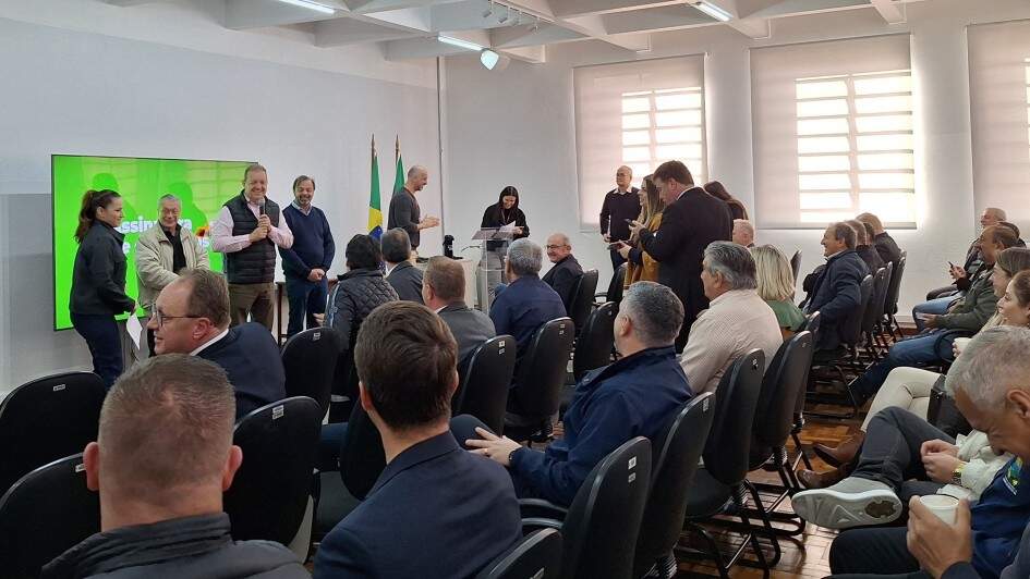 O ato de assinatura ocorreu na sede da Seapi (Secretaria da Agricultura, Pecuária, Produção Sustentável e Irrigação), com a presença do titular da pasta, Edivilson Brum, entre outras autoridades. A iniciativa prevê o repasse de até R$ 300 mil por município. Das 356 cidades inscritas no edital, 297 já firmaram convênio.