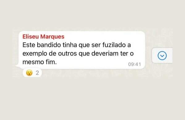 “Este bandido tinha que ser fuzilado a exemplo de outros que deveriam ter o mesmo fim”, escreveu Marques, conforme troca de mensagens.