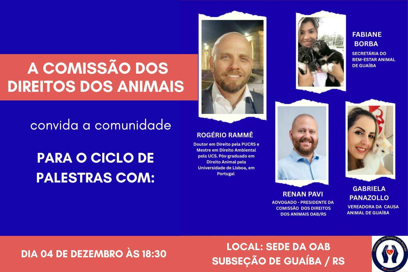 Complementando o evento presencial, a Comissão de Proteção e Defesa dos Direitos dos Animais da OAB/RS (CPDDA) promove uma série de lives educativas no Instagram (@cpddaoabrs), ampliando o alcance da campanha Dezembro Verde, voltada à prevenção do abandono animal.