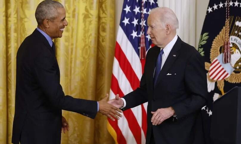 Obama se referiu brincando a Biden como “vice-presidente” antes de se corrigir, inspirando uma saudação de Biden, e então elogiou a Lei de Cuidados Acessíveis, cuja aprovação ele descreveu como um “ponto alto” de seu tempo no cargo.