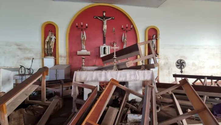 O padre citou a perda de equipamentos como microfones, mesa e caixa de som, livros, documentos e materiais usados nas missas.