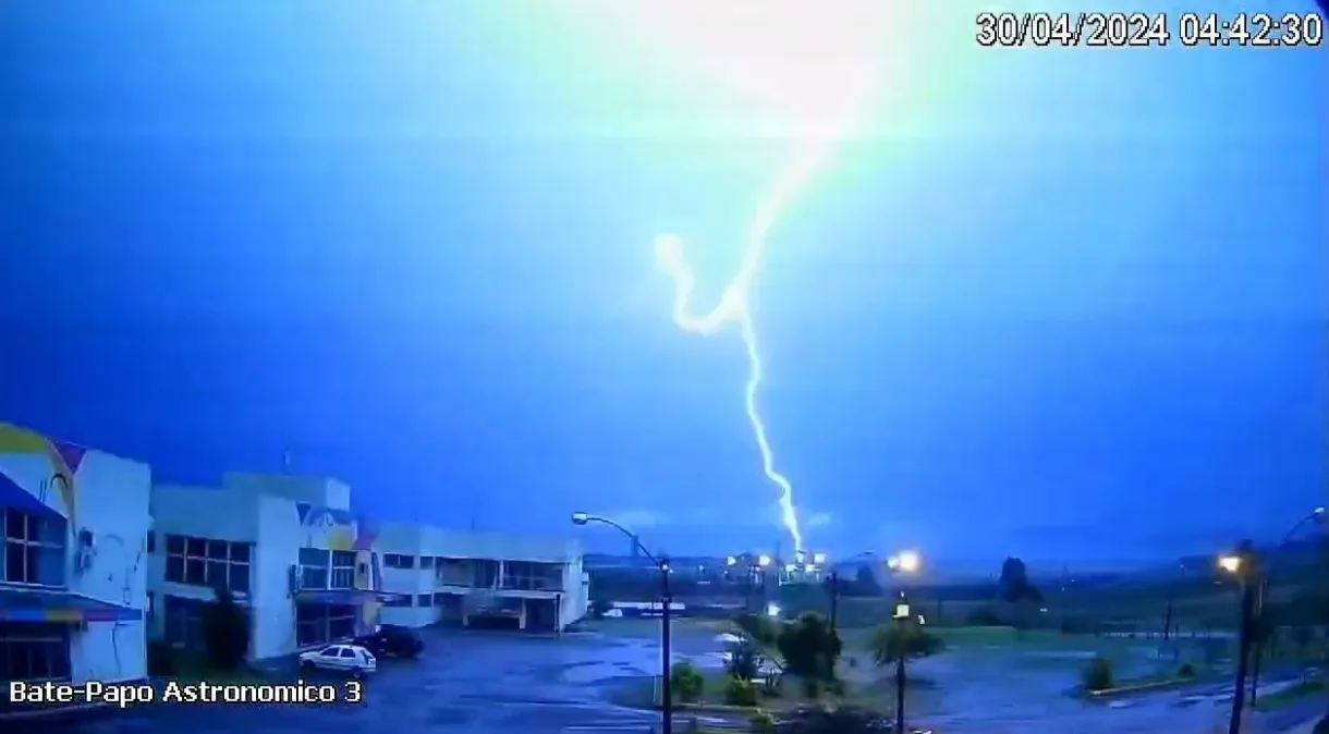 O observatório do Bate-Papo Astronômico, em Santa Maria, no interior do Rio Grande do Sul, contabilizou mais de 4800 raios entre às 5 horas da segunda-feira (29) e às 10 horas da manhã desta terça-feira (30).