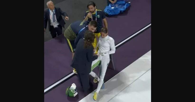 Após ser diagnosticada com um tumor benigno, semanas antes da estreia nos Jogos Olímpicos de 2024, principal nome da esgrima brasileira, Nathalie Moellhausen, foi eliminada, neste sábado (27), para a canadense, Ruien Xiao. Na terceira parte do duelo a esgrimista precisou pedir atendimento médico. Ela voltou a competir, mas não conseguiu reverter a desvantagem e perdeu por 15 a 11. Dias antes da estreia a brasileira havia sido hospitalizada, mas foi liberada pelos médicos para competir.