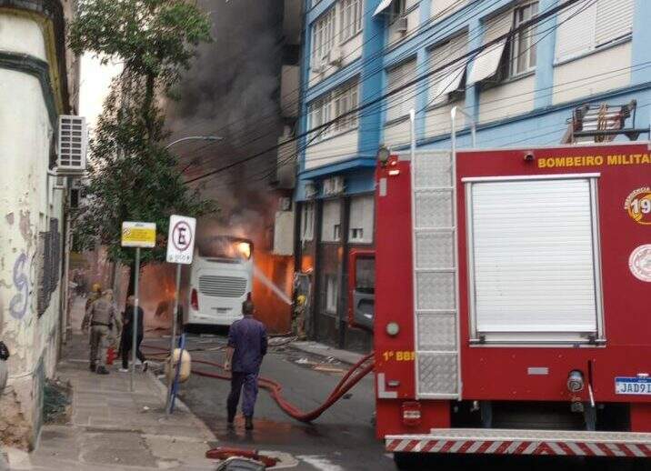 Um ônibus pegou fogo no Centro Histórico de Porto Alegre no fim da tarde desta sexta-feira (3). As chamas começaram por volta das 16h, na rua Espírito Santo, nas imediações da Catedral Metropolitana.