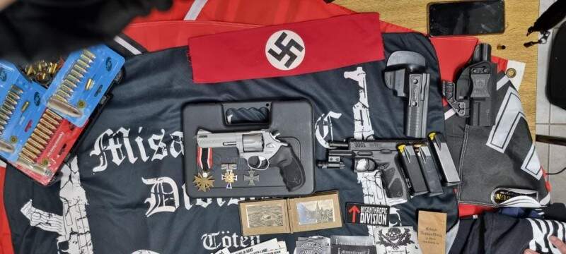 Itens nazistas e armas foram apreendidos durante a operação. (Fotos: Polícia Civil/Divulgação)