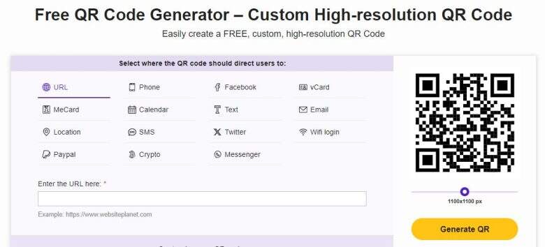 A Website Planet é uma plataforma que oferece inúmeros serviços e produtos digitais, inclusive, fazer QR Code online. Assim, como era de se esperar, embora haja recursos interessantes, não se trata de um serviço especializado e, portanto, a depender da demanda do usuário, pode ser uma escolha menos indicada.
