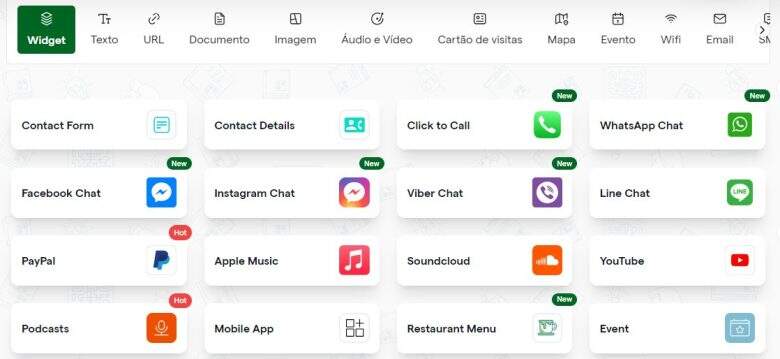 • Recursos variados para diferentes finalidades de QR Code (evento, SMS e outros)