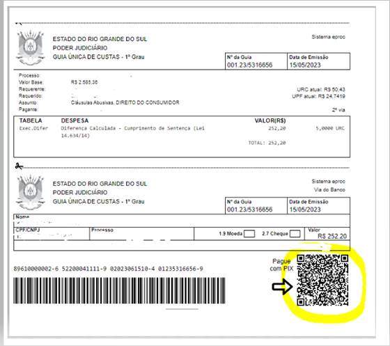 A forma de emissão das guias não foi alterada, sendo incluído o QR Code que possibilita o pagamento por Pix em qualquer instituição financeira. Além disso, também foi disponibilizada, na tela de custas processuais, a função “copiar&colar”.