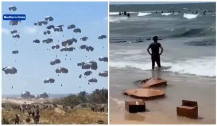 Imagens mostram centenas de palestinos correndo para o local da entrega da ajuda, com alguns se aventurando no mar enquanto os pacotes caíam nas costas de Gaza. Numa cena explícita, vários corpos são mostrados, com alguns civis realizando procedimentos médicos numa tentativa desesperada de ressuscitá-los.