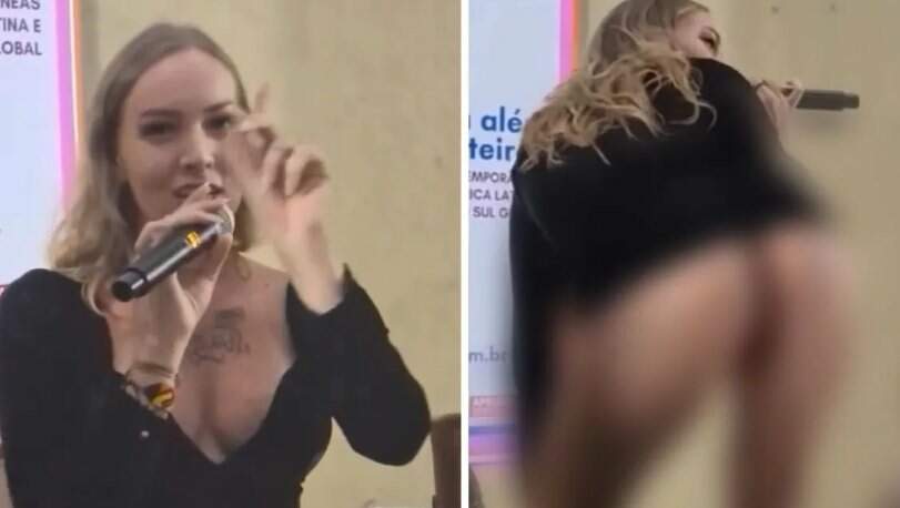 A artista e historiadora Tertuliana Lustosa protagonizou uma cena que tem viralizado na internet, durante uma palestra, nesta quinta-feira (17), na Universidade Federal do Maranhão (UFMA). Em vídeo publicado nas redes sociais, a artista aparece mostrando as nádegas durante um evento acadêmico. A universidade definiu a conduta como “inapropriada para o momento”.