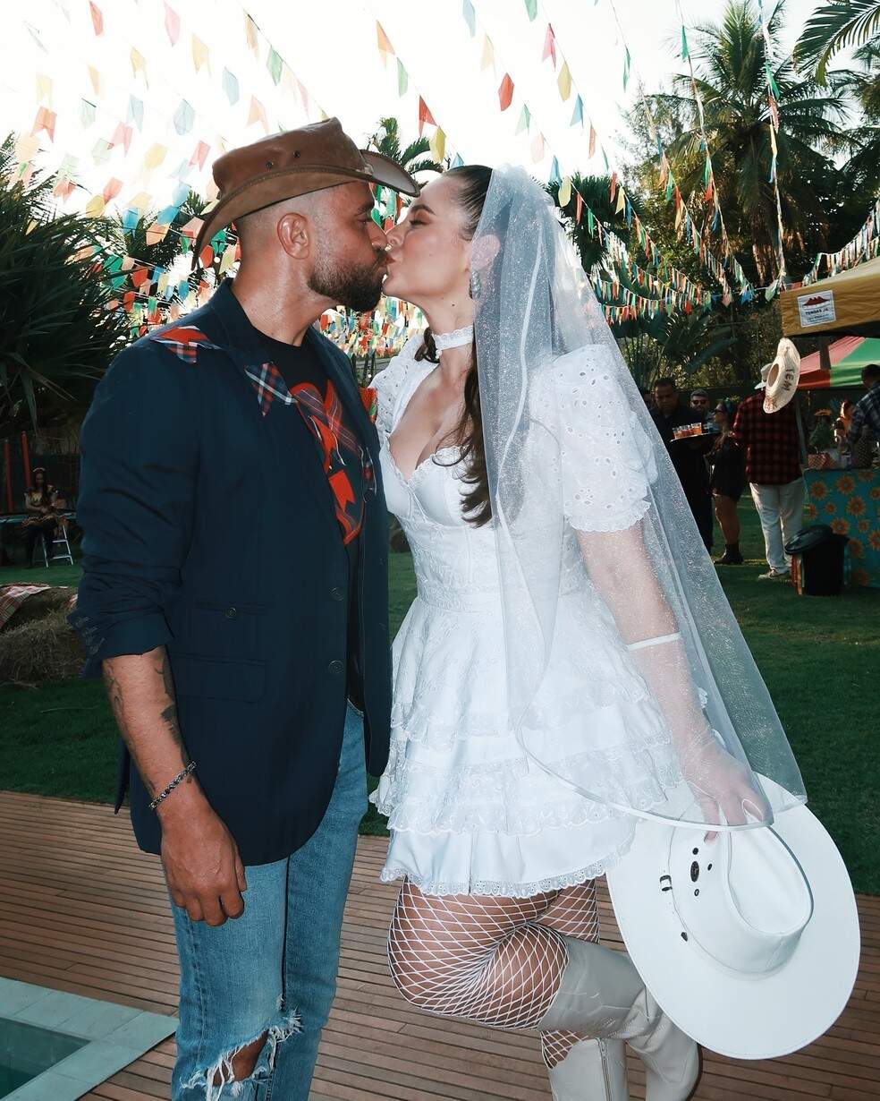 Paolla Oliveira e Diogo Nogueira surpreenderam os fãs ao se vestirem de noivos para uma festa junina neste domingo (28). O cantor compartilhou a celebração em suas redes sociais: “Hoje é dia de festejar!”, escreveu. “Aos 45 do segundo tempo, mas veio ai”, complementou a atriz.