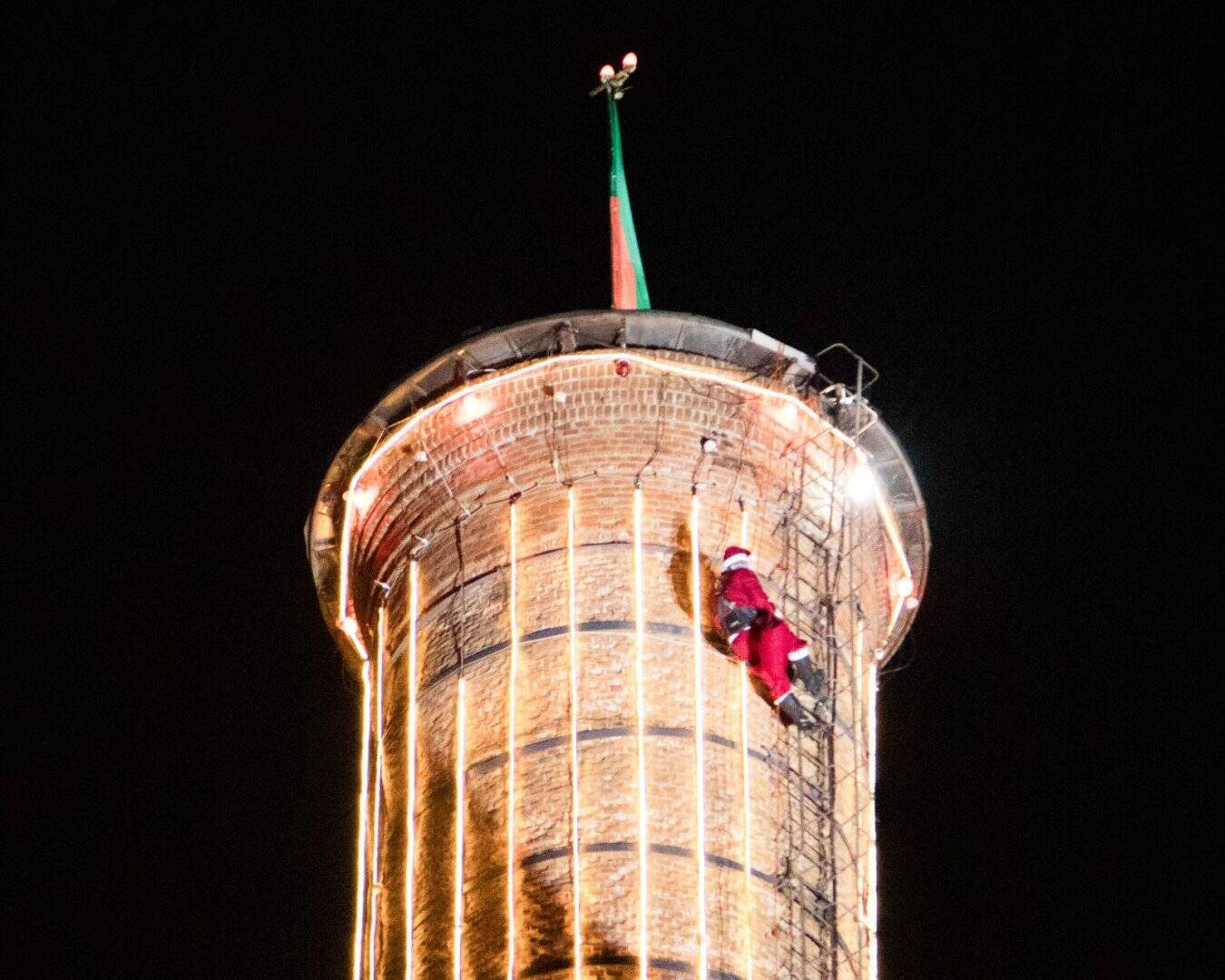 O momento mais aguardado da noite ocorreu com a chegada do Bom Velhinho de helicóptero, seguida da descida por rapel pela icônica chaminé de 86 metros — uma das marcas registradas do evento. A recepção foi acompanhada por um espetáculo de luzes e fogos que iluminou o céu da Capital.