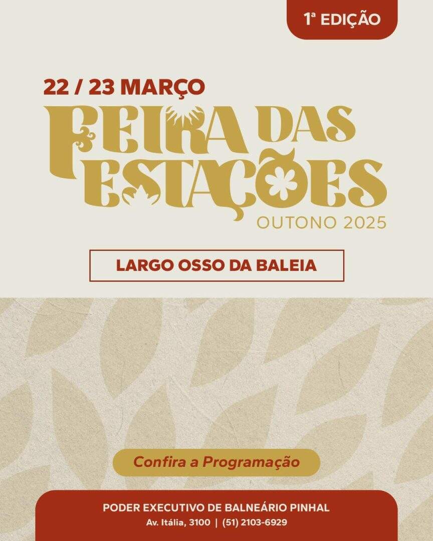 Neste sábado (22) e domingo (23), Balneário Pinhal realiza a primeira edição da Feira das Estações, um encontro que celebra a chegada do outono com uma programação repleta de vivências culturais e contato com a natureza.