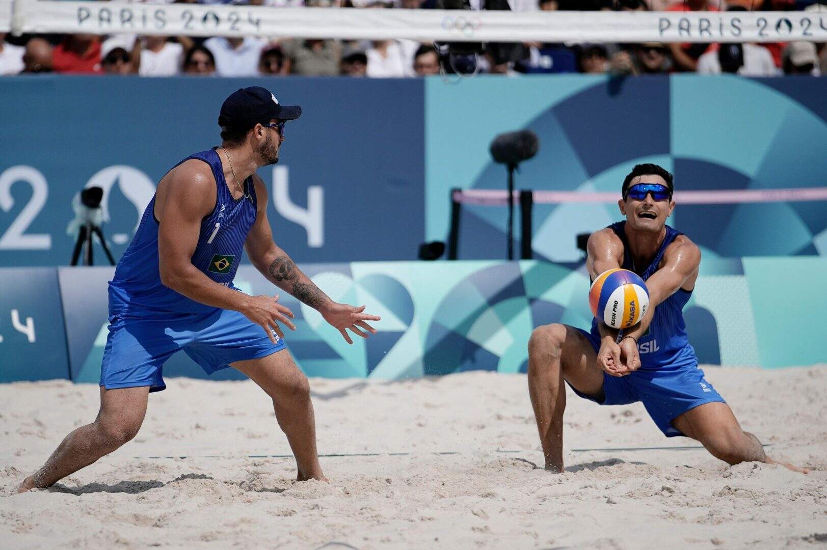 Os brasileiros George e André foram superados por 2 sets a 1 (parciais de 21/17, 14/21 e 15/8) pelos norte-americanos Partain e Benesh, nesta quinta-feira (01), na Arena Torre Eiffel. O resultado colocou os brasileiros na repescagem do vôlei de praia masculino nos Jogos Olímpicos de Paris 2024.