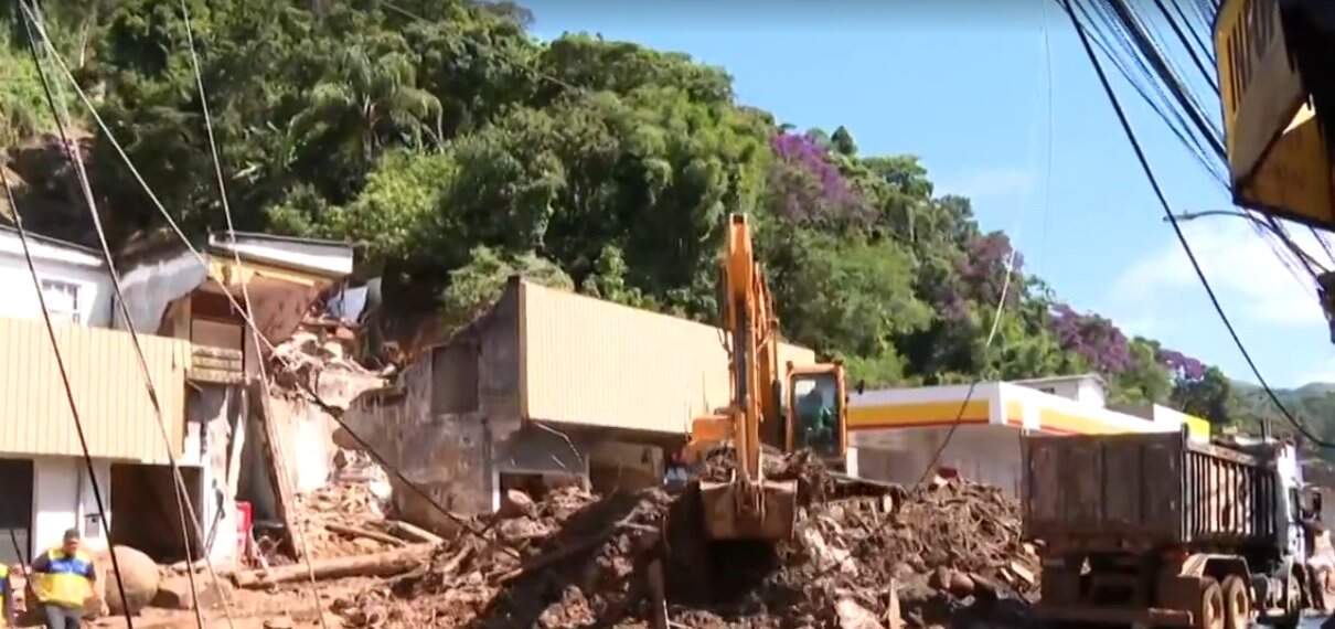 No local, o trânsito foi liberado. Entretanto, é possível ver um cenário de devastação. Condomínios destruídos, fios e postes aos pedaços, lixos espalhados pelas ruas e parte da calçada arrancada pela correnteza.
