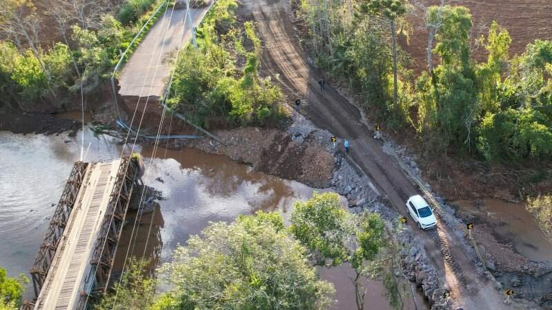 O governo do Rio Grande do Sul concluiu a construção de uma passagem emergencial na ERS-494 e liberou o tráfego de veículos entre Três Cachoeiras e Morrinhos do Sul, no Litoral Norte, na quinta-feira (29).