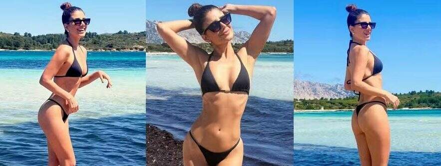 Uau! Paula Fernandes, de 41 anos, deixou seguidores babando nesta quinta-feira (30) ao compartilhar uma nova foto da sua viagem de férias à Itália. No clique, a cantora sertaneja aparece usando um biquíni fio-dental e sorridente enquanto toma um sol. Ao fundo, é possível ver a paisagem paradisíaca da Sardenha, tendo o mar cristalino como destaque.