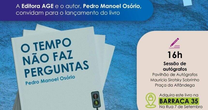 O quê: Lançamento e sessão de autógrafos do livro O Tempo Não Faz Perguntas, de Pedro Manoel Osório Quando: 9 de novembro, domingo, às 16 horas