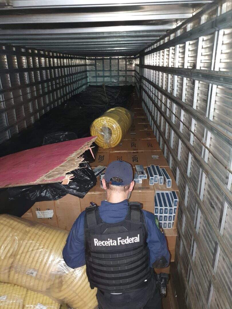 A mercadoria, avaliada em mais de R$1,5 milhão, era transportada em uma carreta baú, com placas do Paraná. O motorista, de 42 anos, foi conduzido à Polícia Federal.