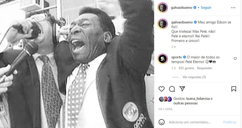 O locutor e companheiro de Pelé na transmissão da Copa de 1994 (do Tetra), Galvão Bueno, também homenageou o jogador.