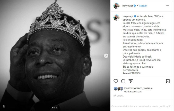 Foi uma honra dividir os gramados com você, Pelé! Obrigado por tudo, Rei 👑 pic.twitter.com/jFQ1DtCCh7