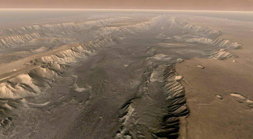 Marte tem sua própria versão do Grand Canyon (fissura natural resultante de constante erosão, no Arizona), e os cientistas descobriram que essa característica dramática é o lar de “quantidades significativas de água”, após uma sondagem feita por uma sonda circulando o planeta vermelho, de acordo com a Agência Espacial Europeia (ESA). As descobertas foram publicadas na revista Icarus.