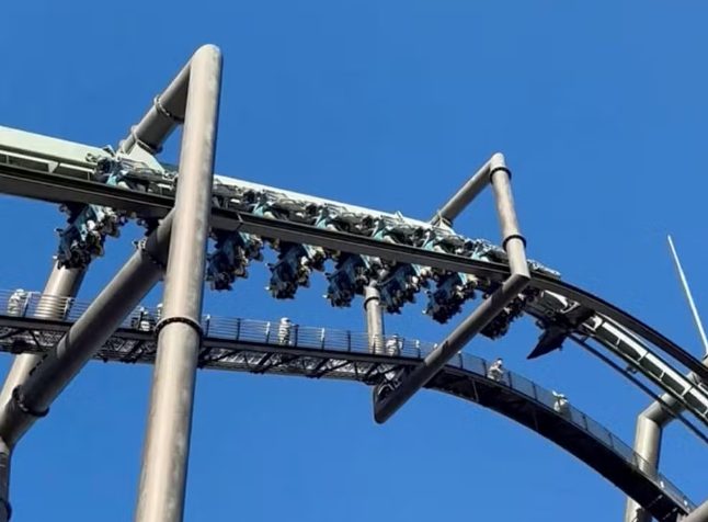 A emissora japonesa NHK informou que o passeio parou em um de seus pontos mais altos, que segundo o site do parque tem 46 metros de altura.