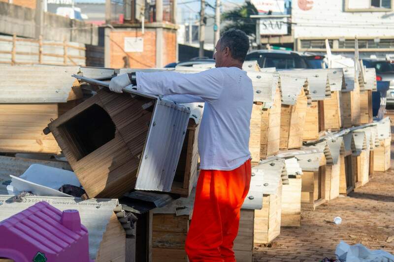 Na última quinta-feira (30), foi realizada a transferência de todos os cachorros para um espaço com instalações mais adequadas, onde o Pata Molhada passou a operar. Com isso, servidores penitenciários, juntamente dos apenados, realizaram o desmonte do antigo local e a separação dos materiais que seriam reaproveitados.