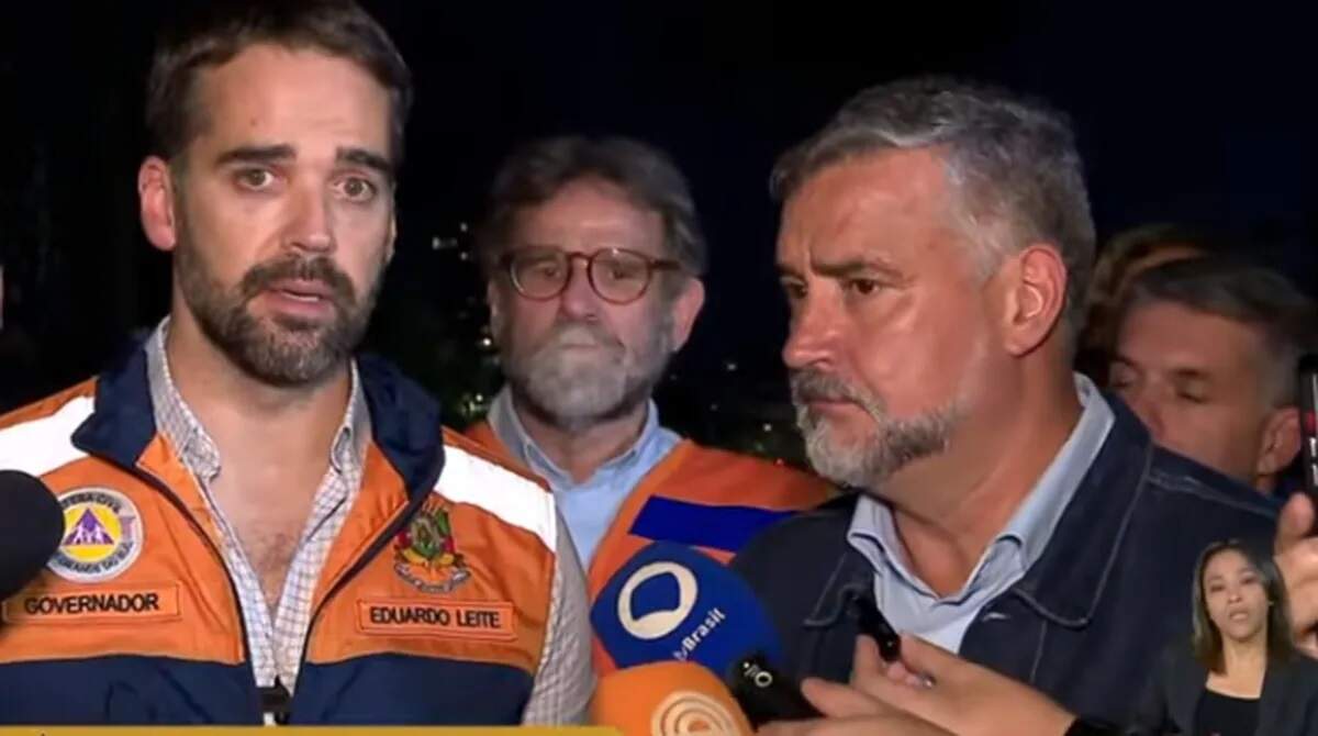 O governador do Rio Grande do Sul, Eduardo Leite, e o ministro da Secretaria Extraordinária da Presidência da República para Apoio à Reconstrução do Rio Grande do Sul, Paulo Pimenta tem divergido sobre alternativas de respostas a crise climática do Estado.