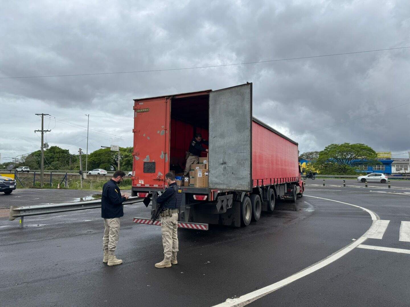 A Polícia Rodoviária Federal (PRF) prendeu um homem, na BR-290, em Porto Alegre, com uma carreta carregada de grande quantidade de produtos que entraram ilegalmente no País. Entre os produtos havia diversos tipos de bebidas alcoólicas, perfumes e produtos de beleza.