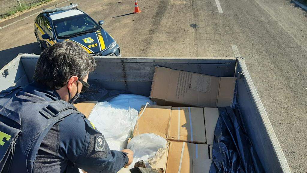 Na carroceria, os PRFs encontraram mais de três toneladas de pó branco acondicionado em caixas de papelão identificadas como de uma empresa química chinesa. Os locais com a identificação do produto foram arrancados e substituídos pela logomarca de uma empresa brasileira fechada há anos.