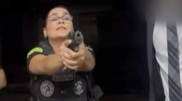 A moradora registrou a ação policial, no vídeo da abordagem dos agentes, uma policial chegou a apontar uma arma em direção à moradora e falar com ela em tom de ameaça.