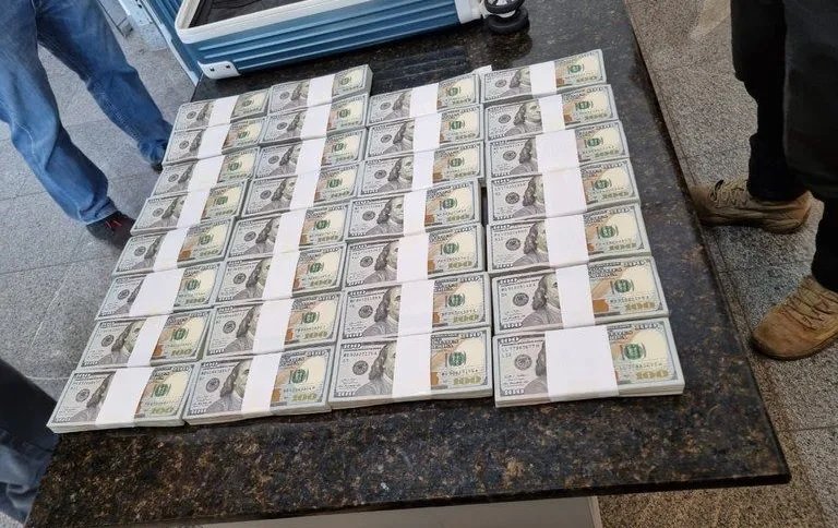 A Polícia Federal (PF) prendeu um passageiro com uma mala de viagem contendo fundo falso, onde transportava ilegalmente uma quantia significativa de dólares: 300 mil (cerca de 1,5 milhão em reais).