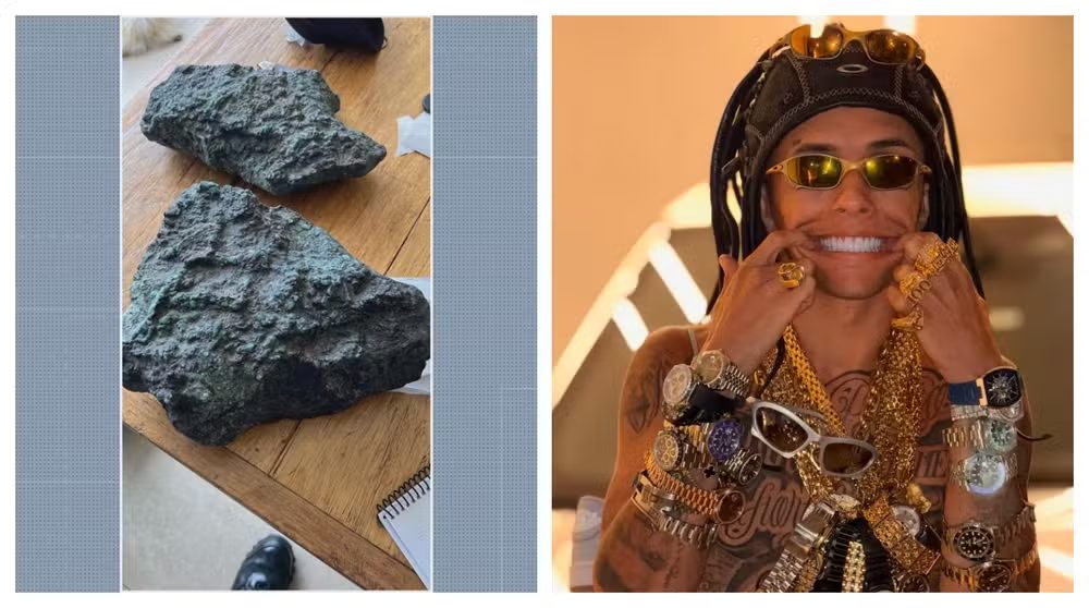 A Polícia Federal (PF) enviou para perícia duas pedras gigantes – que supostamente são de esmeraldas milionárias brutas – encontradas na casa do influenciador digital Bruno Alexssander Souza Silva, conhecido como Buzeira, durante a prisão dele ocorrida na terça-feira (14), durante a Operação Narco Bet.