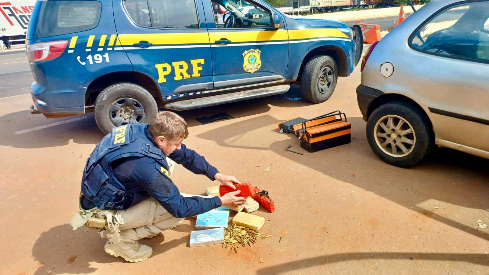 Em uma ação de combate ao crime da Operação Tiradentes, policiais abordaram um Palio com placas do Paraná. No carro estavam o motorista e uma passageira que, ao serem indagados sobre a viagem, responderam com informações desconexas. Por isso, os agentes decidiram fazer uma busca mais apurada, encontrando dezenas de tabletes de drogas e 200 munições de fuzil calibre 5.56 que estavam escondidos na forração das portas do carro.