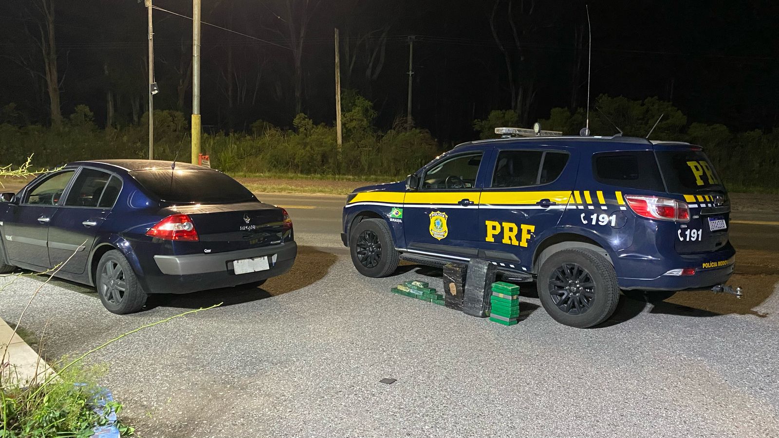 Durante operação de combate ao crime, policiais rodoviários federais deram ordem de parada ao motorista de um Megane, com placas de Pelotas. No carro havia um casal e, durante a fiscalização, foram encontrados mais de 50 quilos de drogas no porta-malas.