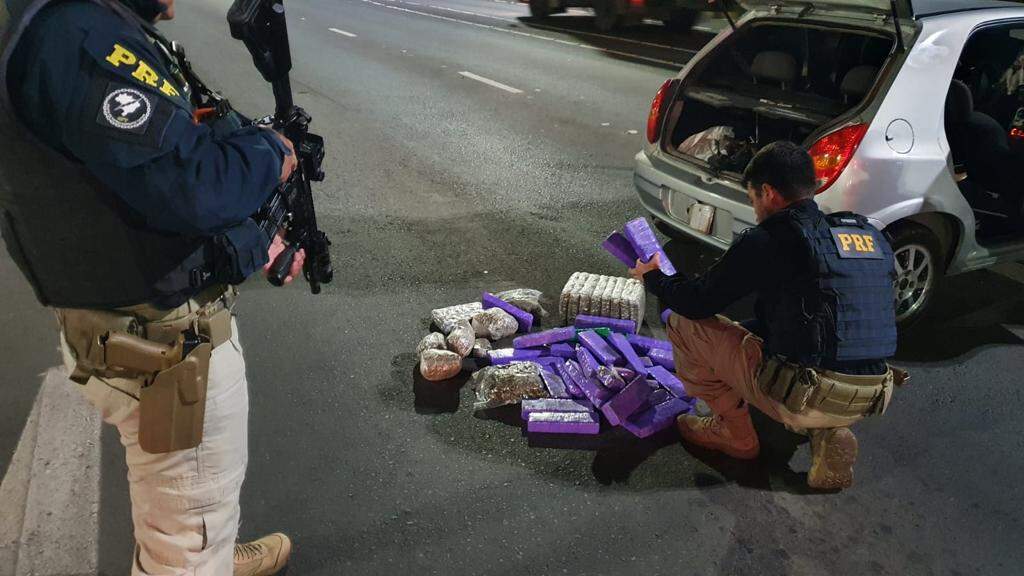 Os policiais então realizaram buscas no veículo, encontrando no porta-malas cerca de 20 kg de maconha, 7 kg de skunk e 2 kg da “maconha camarão”, que é a flor pura da planta de cannabis. Tanto o skunk quanto a “maconha camarão” tem maior potencial alucinógeno que a maconha comum, e alto valor comercial no mercado do tráfico.