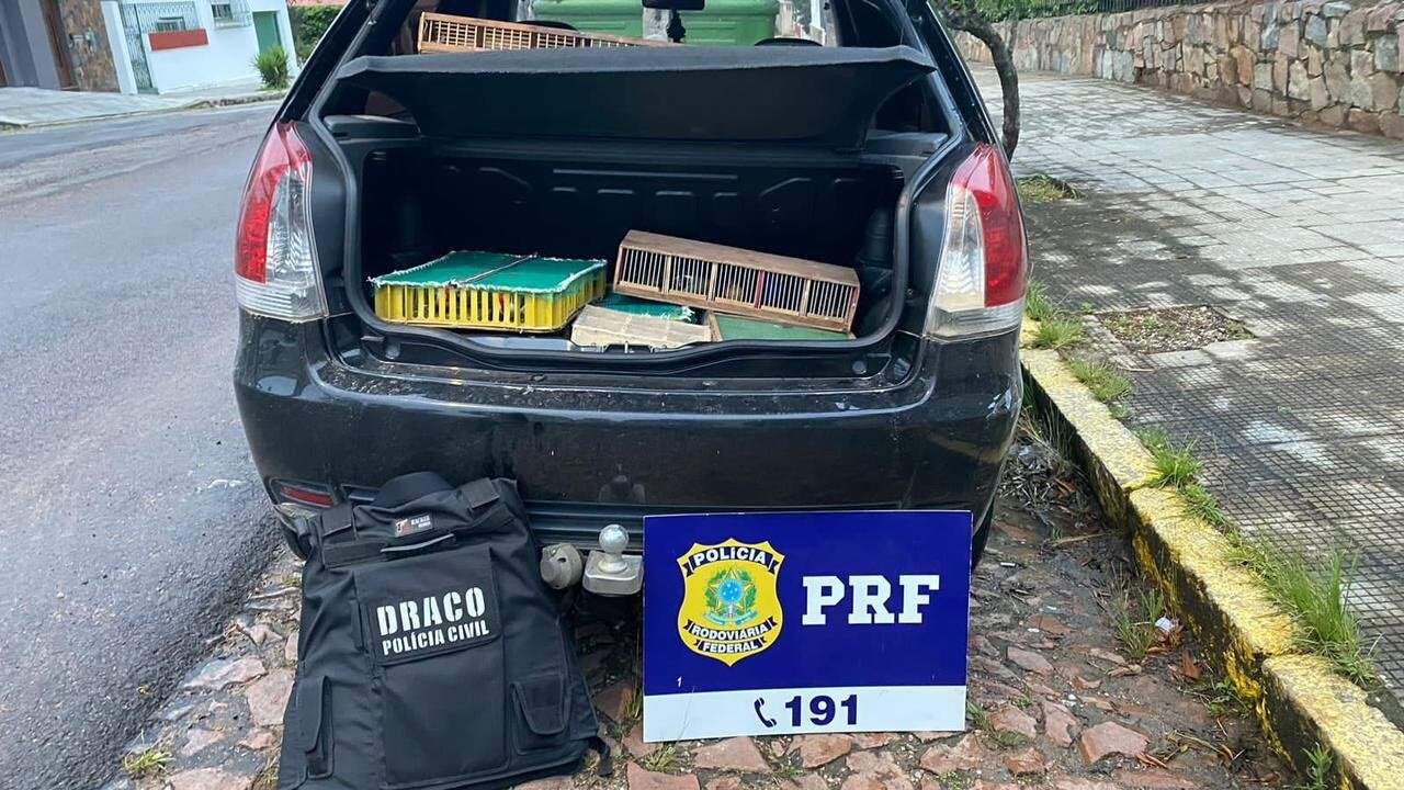 A Polícia Rodoviária Federal e a Polícia Civil resgataram aproximadamente 150 pássaros silvestres que eram transportados ilegalmente no porta-malas de um carro. Três pessoas foram presas. A abordagem ocorreu na BR 293, em Bagé.