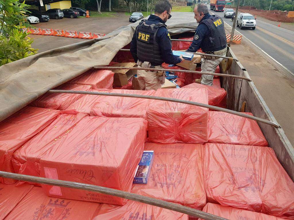 A Polícia Rodoviária Federal apreendeu, na tarde desta quarta-feira (21),cerca de 300 mil maços de cigarros paraguaios que eram transportados em uma carreta abordada na BR 386, em Lajeado. Na ação, um homem foi preso.