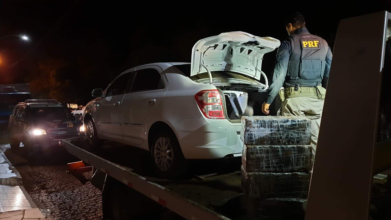 Após consulta, constatou-se que a placa utilizada não correspondia aquele veículo, e sim a outro Cobalt que havia sido roubado em Campo Bom no início do mês. Dentro do porta-malas foram encontrados 90 kg de maconha.