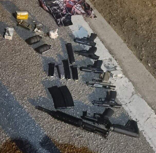 O veículo foi abordado pelos policiais rodoviários, que encontraram um compartimento oculto no painel, onde havia um fuzil calibre 556, duas granadas, cinco pistolas 9 milímetros, carregadores e grande quantidade de munição.