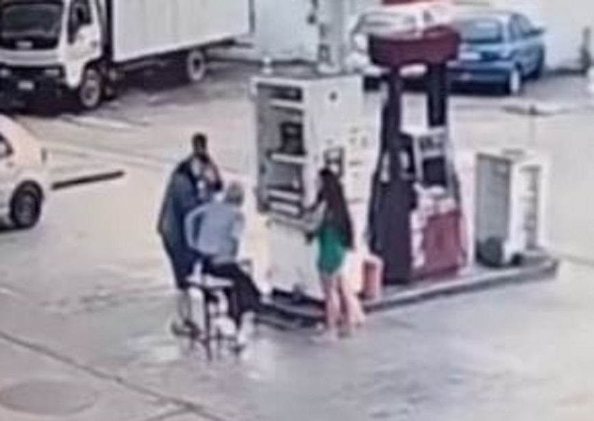 Nas imagens é possível ver o cliente sentado junto a uma das bombas de abastecimento, próximo a uma mulher que está de pé e a dois frentistas. Ele então se levanta, saca da uma arma-de-fogo da parte de trás da cintura, aponta para a cabeça de um dos trabalhadores e atira duas vezes, a curta distância. A vítima tomba no local, enquanto a acompanhante do agressor aparenta desespero com a situação. O outro homem corre em direção ao escritório do posto, sem ser atingido.