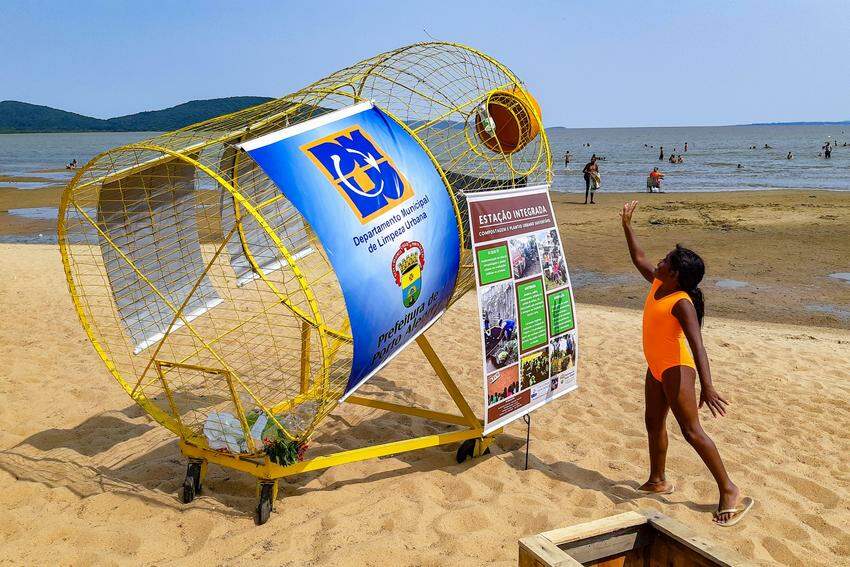 No último sábado (12), cerca de 400 pessoas foram diretamente impactadas com a ação de sensibilização sobre a correta segregação dos resíduos. A Equipe de Gestão e Educação Ambiental do departamento montou um stand próximo à guarita da praia com maquetes de unidade triagem e de composteira caseira.