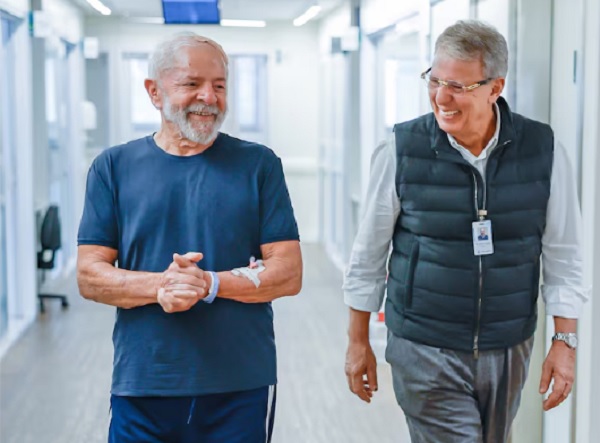 Nessa sexta, Lula deixou a UTI e “segue lúcido e orientado, alimentou-se normalmente e realizou caminhada pelos corredores”. À tarde, foi divulgado nas redes sociais do presidente um vídeo que mostra Lula caminhando pelos corredores do hospital ao lado de um dos médicos que o acompanha, com quem conversa. “Ele quer uma cafezinho espresso”, brinca o presidente, apontando para o doutor.