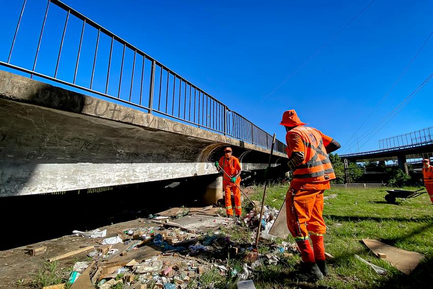 As equipes da Smsurb (Secretaria Municipal de Serviços Urbanos) e do DMLU (Departamento Municipal de Limpeza Urbana) concluíram nesta semana o mutirão de limpeza no entorno da antiga Ponte do Guaíba, na entrada de Porto Alegre.