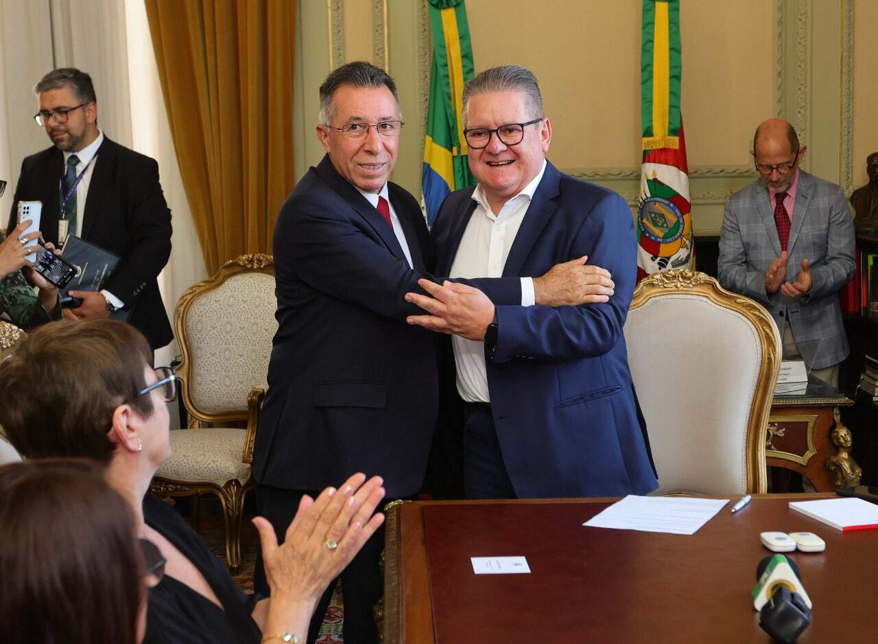 O governador do Rio Grande do Sul, Ranolfo Vieira Júnior (PSDB), transmitiu, na tarde deste domingo (11), o cargo de chefe do Executivo para o presidente da Assembleia Legislativa gaúcha, deputado Valdeci Oliveira (PT), em razão de compromissos oficiais fora do Estado.