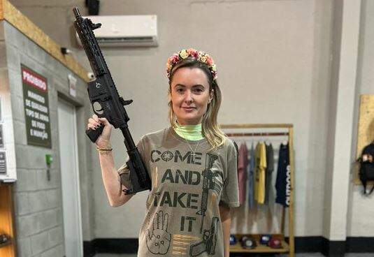Na foto em que publicou nas redes sociais, Julia Zanatta segura uma carabina e usa uma blusa com ilustração de uma mão com quatro dedos alvejada por três tiros. Na blusa há ainda os dizeres “come and take it” (venha e pegue isso, no inglês). Na legenda do post, ela também cita o presidente e defende empregos e investimentos no setor de armas.